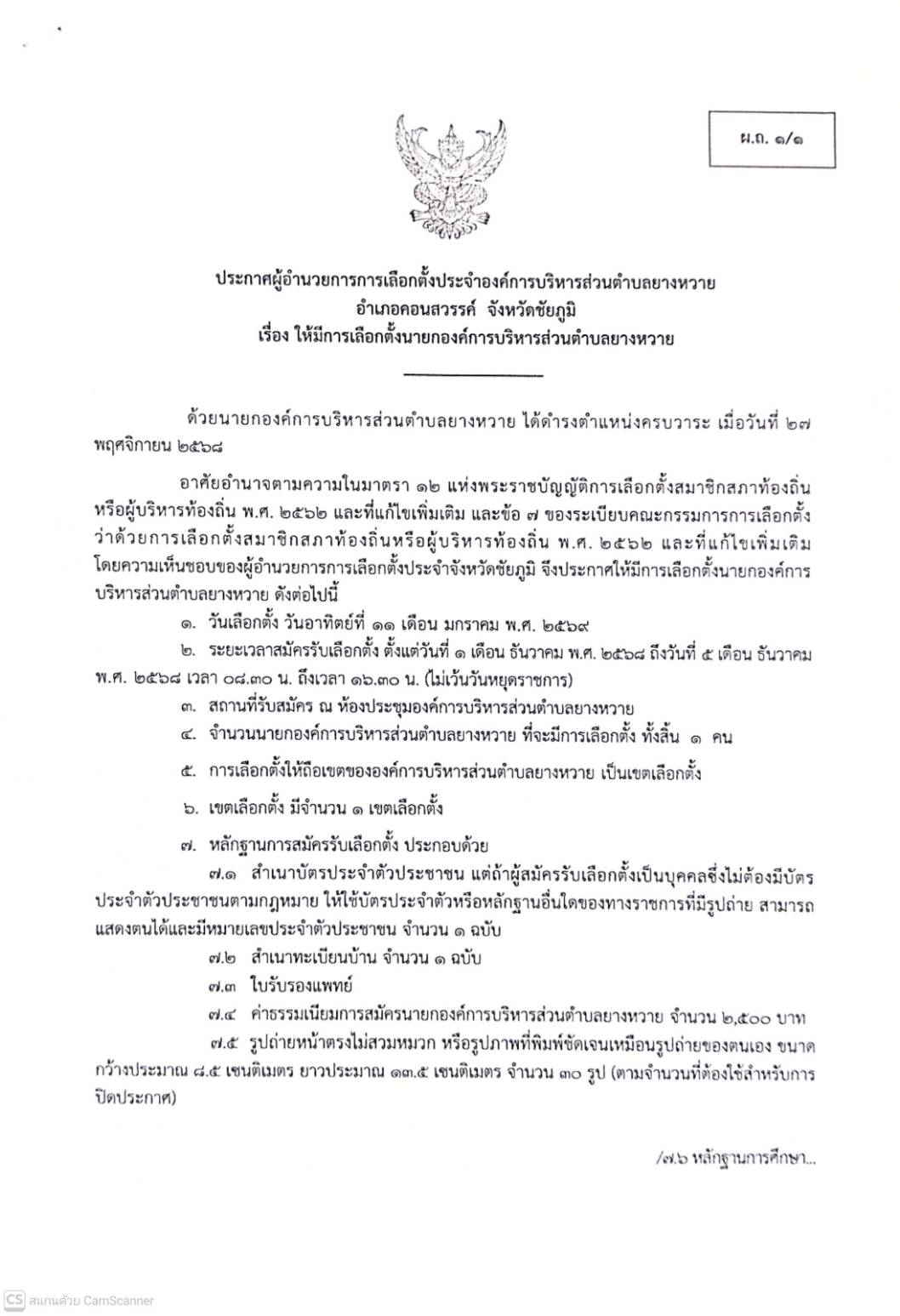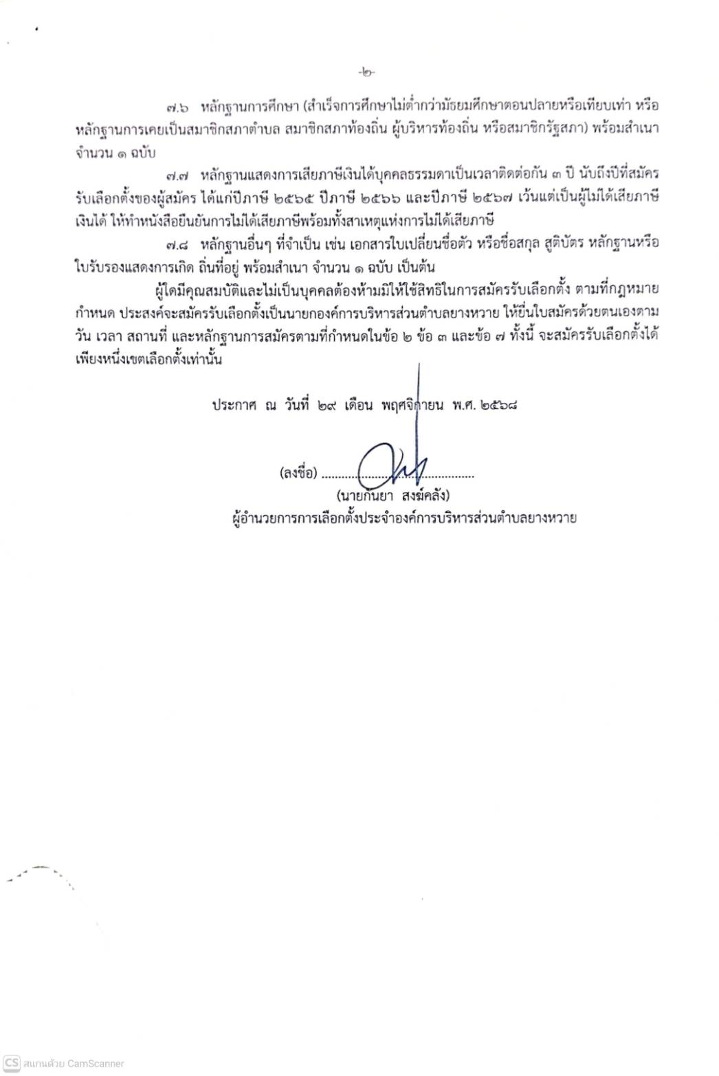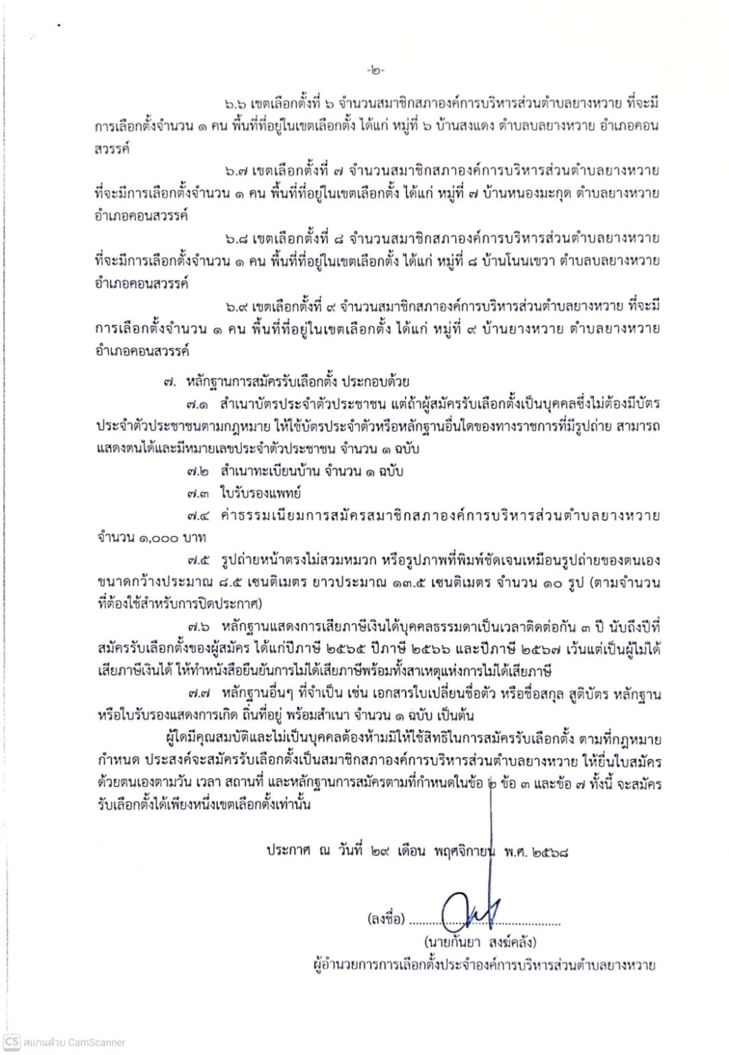 รับสมัครเลือกตั้งสมาชิกสภาองค์การบริหารส่วนตำบลและนายกองค์การบริหารส่วนตำบล ระหว่างวันที่ 1-5 ธันวาคม 2568 ณ ห้องประชุมองค์การบริหารส่วนตำบลยางหวาย