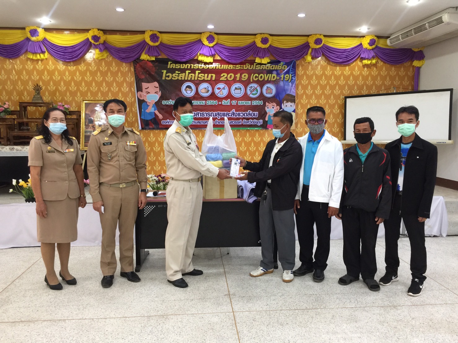 5. มอบเจลแอลกอฮอล์และหน้ากากอนามัยสำหรับจุดคัดกรองและจุดกักกันของแต่ละพื้นที่ที่มีผู้ติดเชื้อ ภายในตำบลยางหวาย