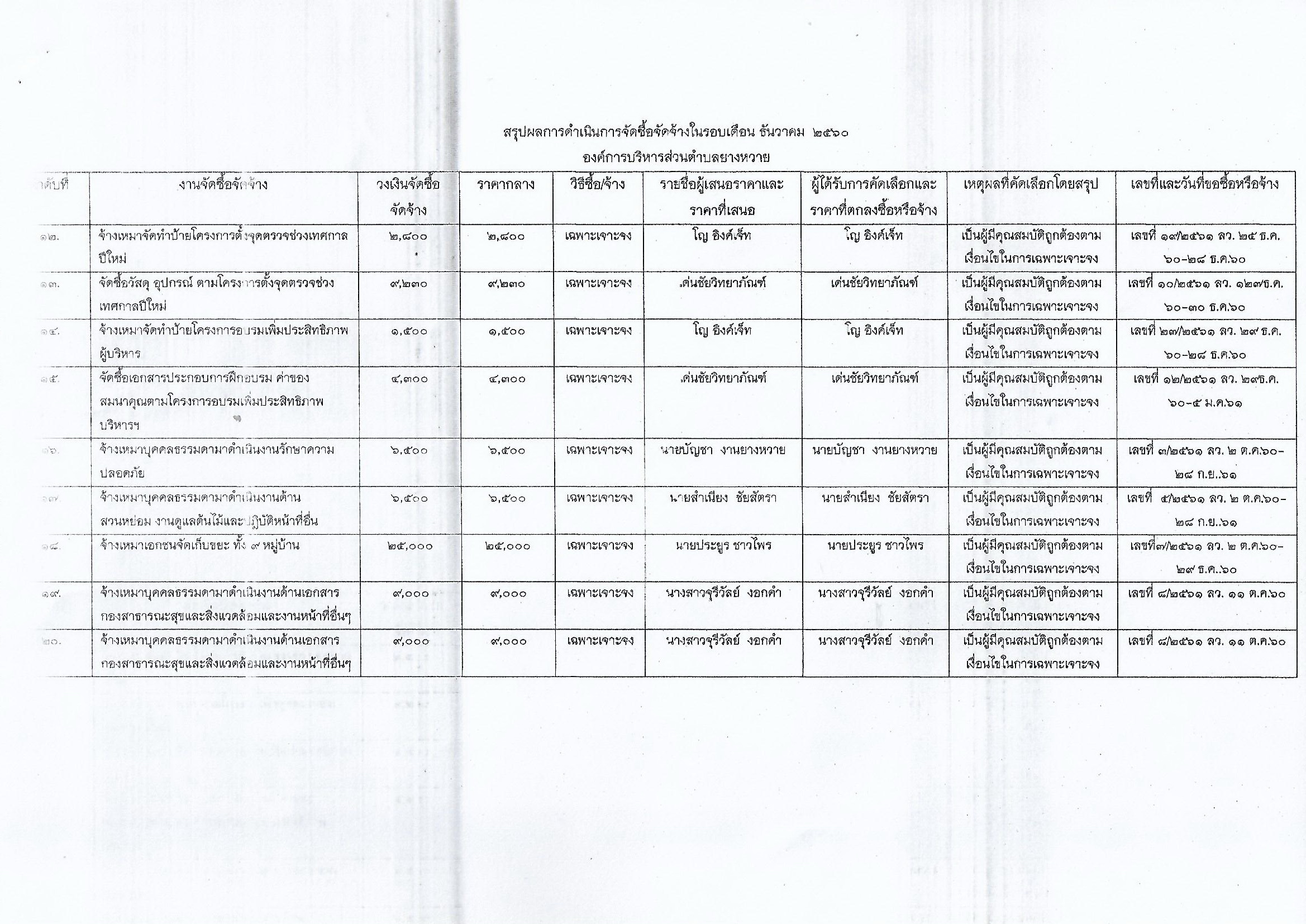 สรุปผลการจัดซื้อจัดจ้าง เดือน ธันวาคม 2560 |