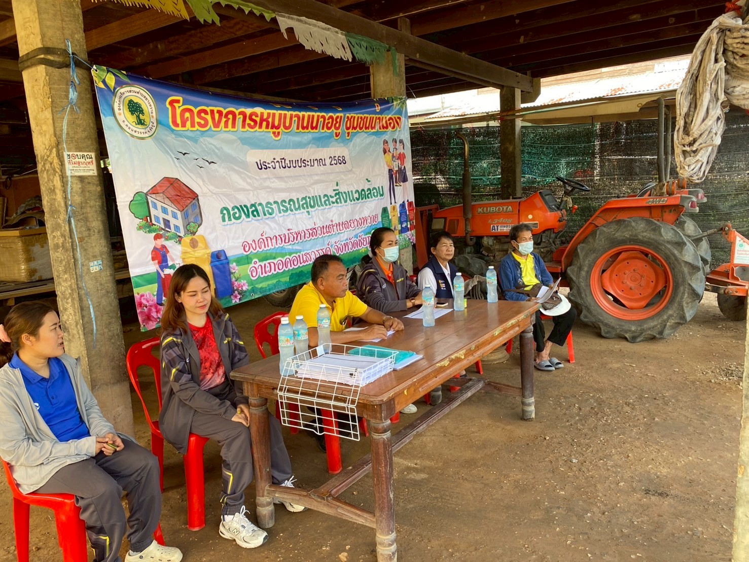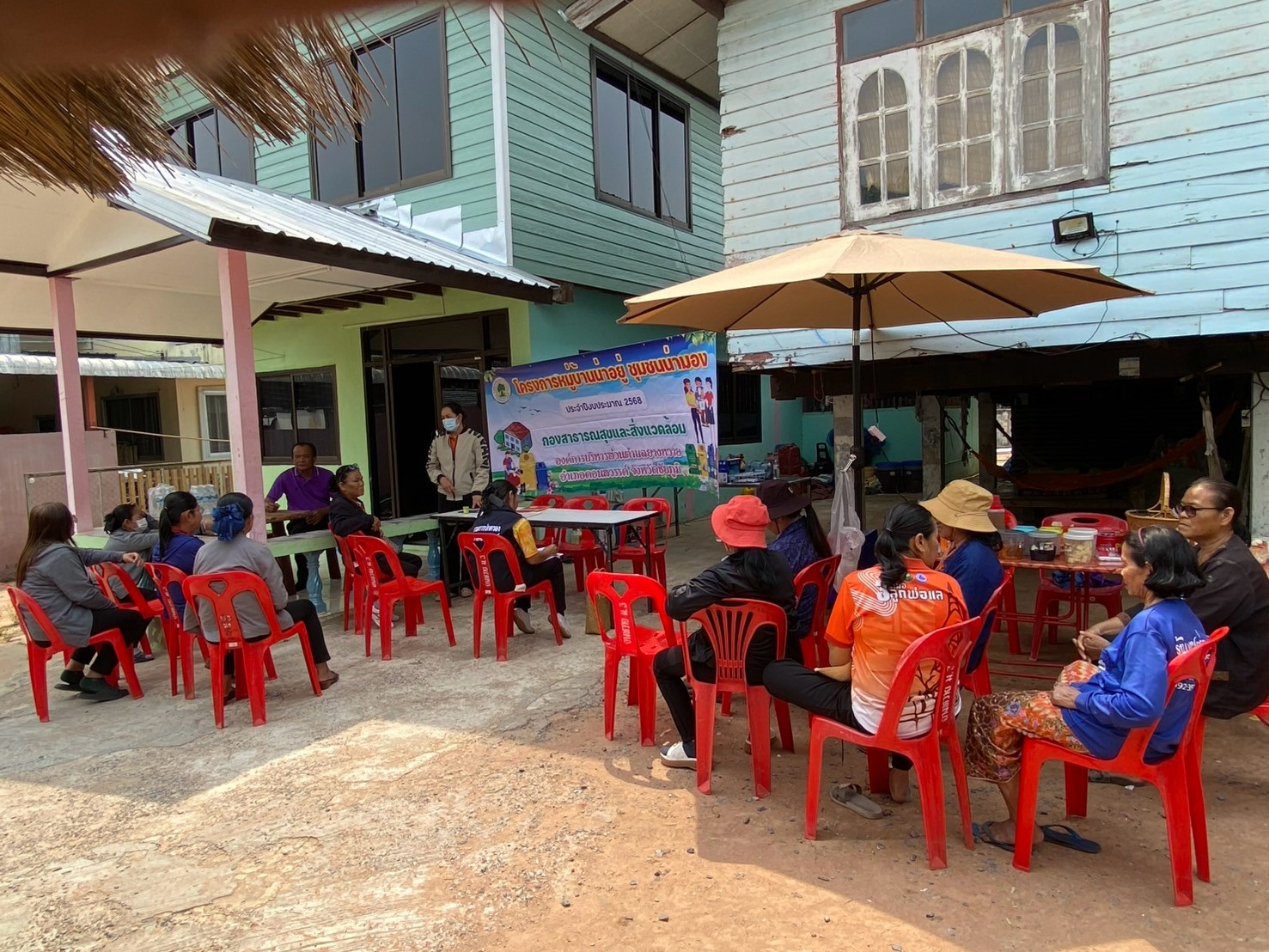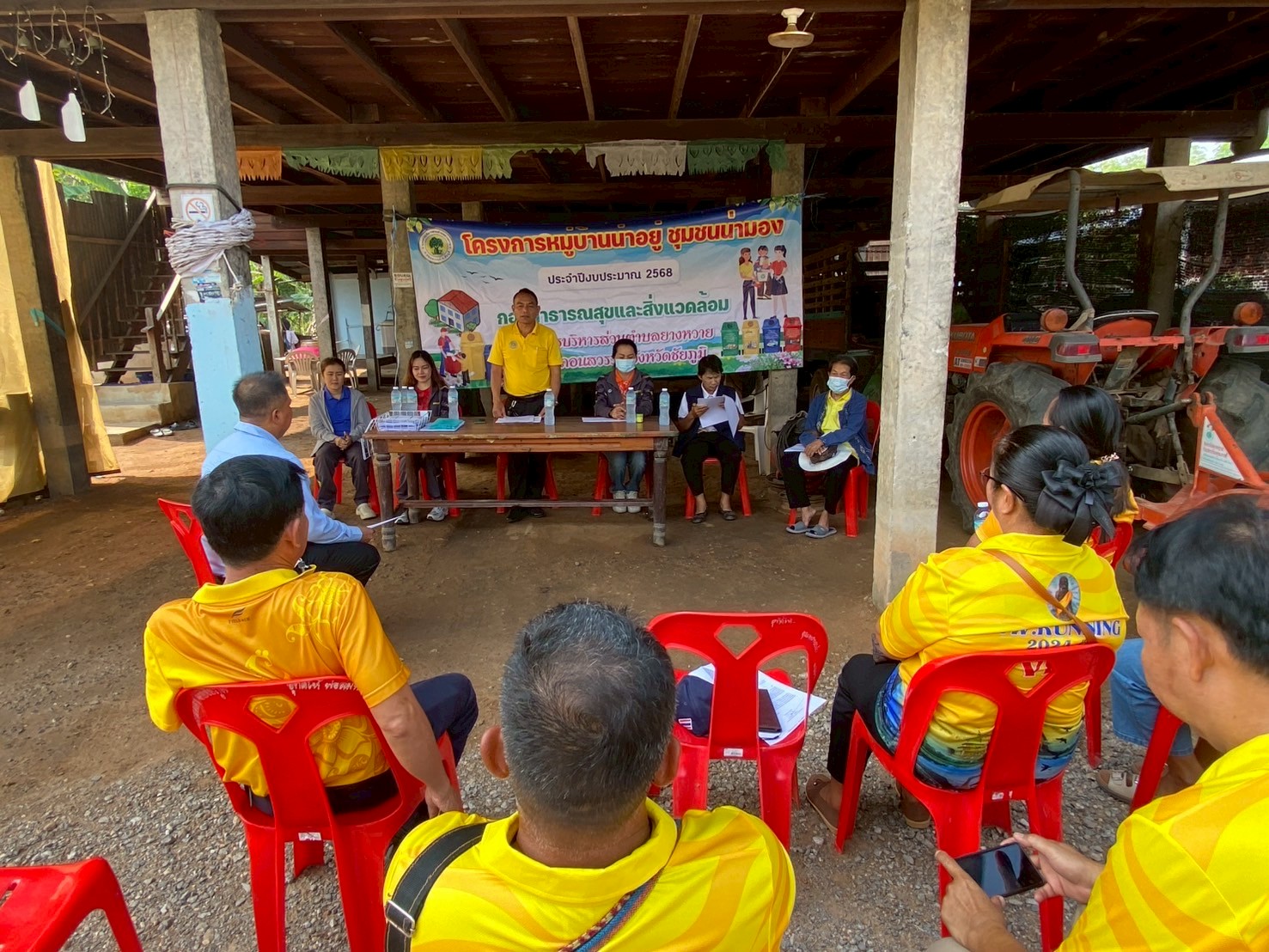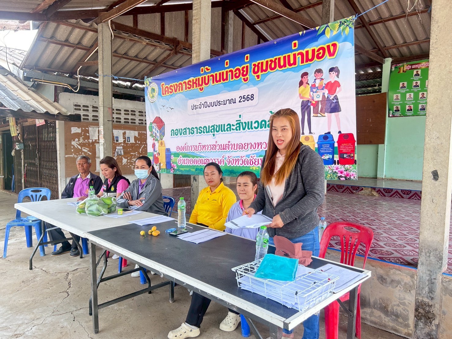 - ผู้นำชุมชนทั้ง 9 หมู่บ้าน จัดประชุมหมู่บ้านเพื่อชี้แจงแนวทางหลักเกณฑ์เพื่อทำความเข้าใจและร่วมกันกำหนดนโยบายของหมู่บ้านในการทำกิจกรรมพัฒนาหมู่บ้าน และการจัดการขยะในหมู่บ้าน (การลดและการคัดแยกขยะ การจัดตั้งธนาคารขยะรีไซเคิลชุมชน)