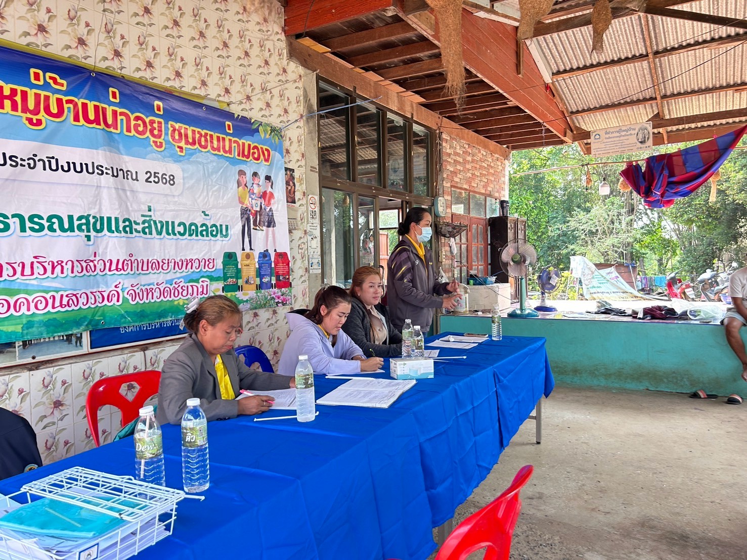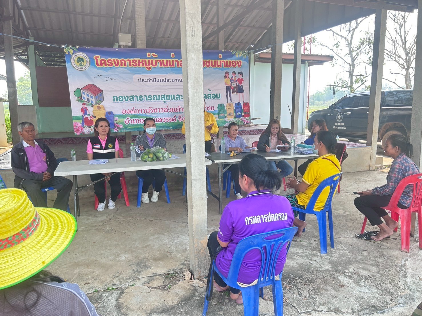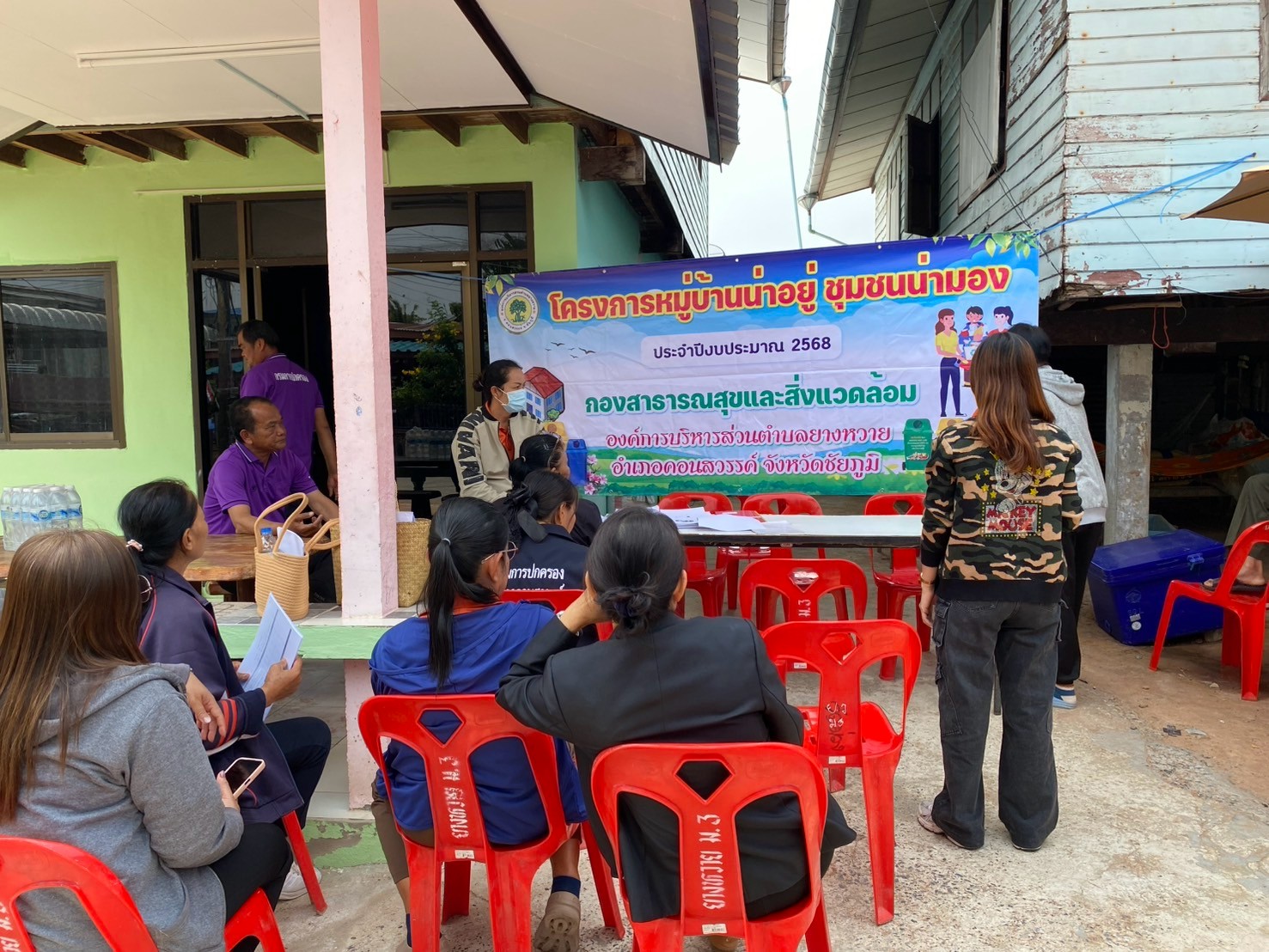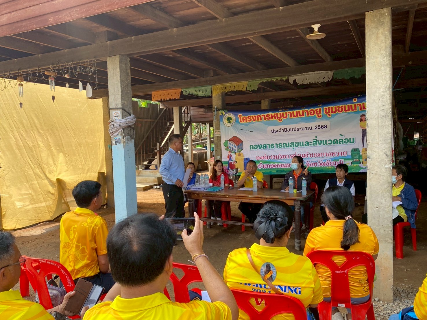 - ผู้นำชุมชนทั้ง 9 หมู่บ้าน จัดประชุมหมู่บ้านเพื่อชี้แจงแนวทางหลักเกณฑ์เพื่อทำความเข้าใจและร่วมกันกำหนดนโยบายของหมู่บ้านในการทำกิจกรรมพัฒนาหมู่บ้าน และการจัดการขยะในหมู่บ้าน (การลดและการคัดแยกขยะ การจัดตั้งธนาคารขยะรีไซเคิลชุมชน)