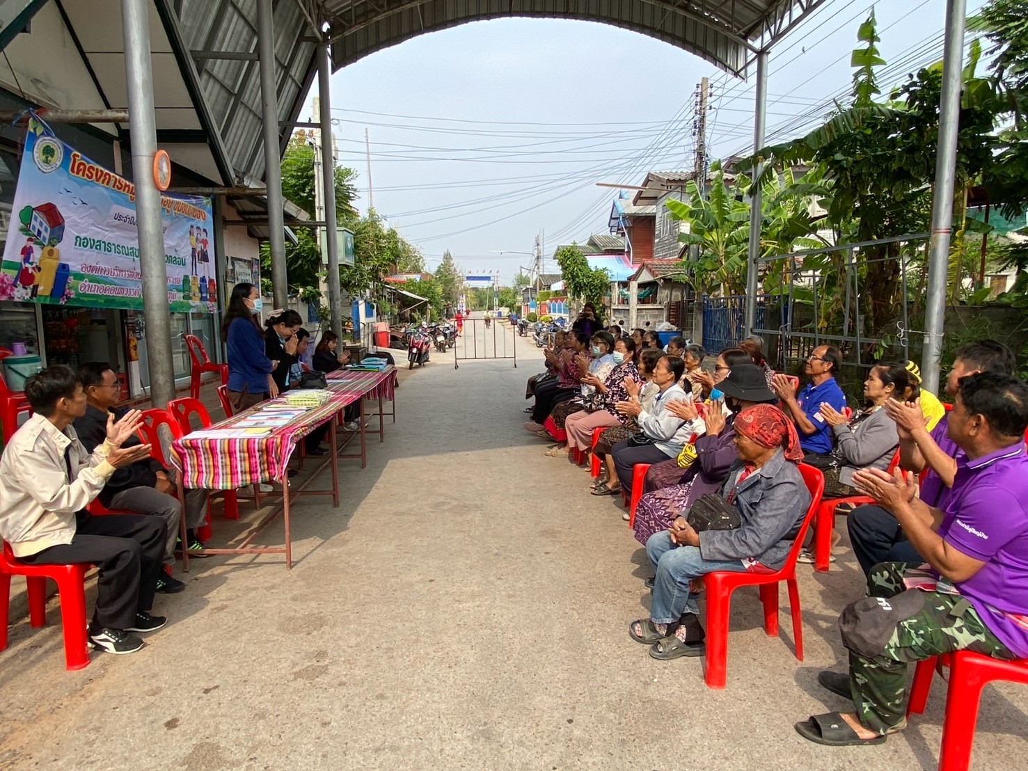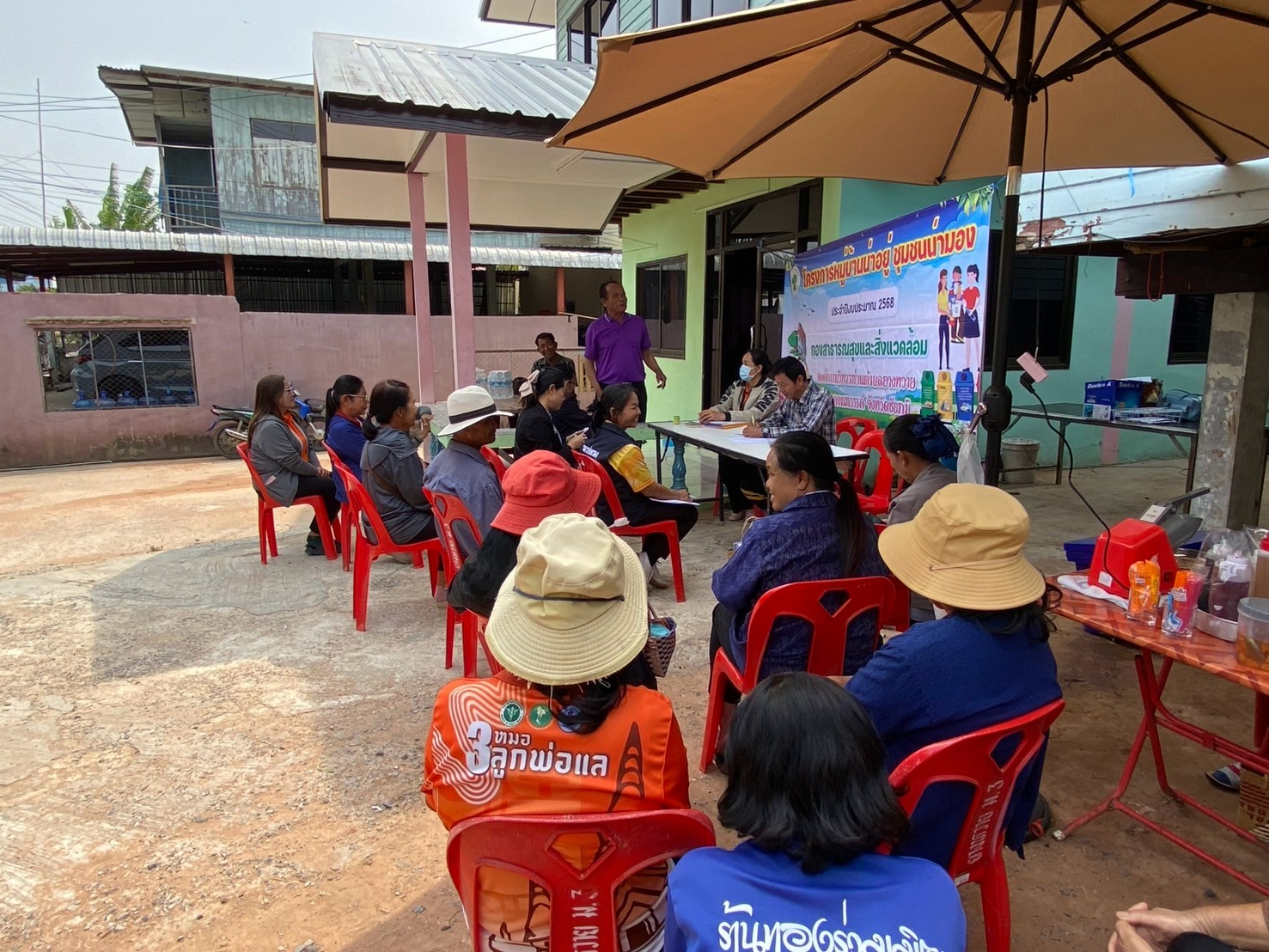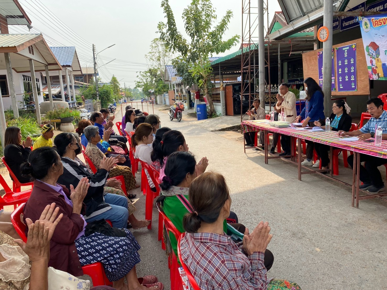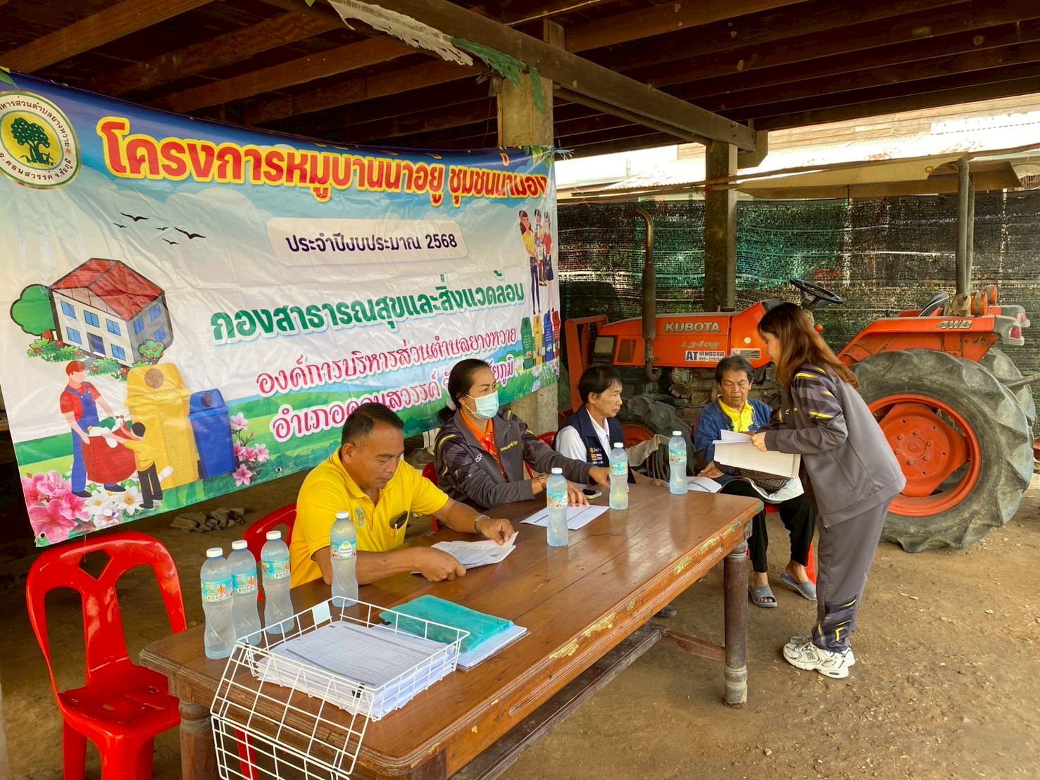 - ผู้นำชุมชนทั้ง 9 หมู่บ้าน จัดประชุมหมู่บ้านเพื่อชี้แจงแนวทางหลักเกณฑ์เพื่อทำความเข้าใจและร่วมกันกำหนดนโยบายของหมู่บ้านในการทำกิจกรรมพัฒนาหมู่บ้าน และการจัดการขยะในหมู่บ้าน (การลดและการคัดแยกขยะ การจัดตั้งธนาคารขยะรีไซเคิลชุมชน)