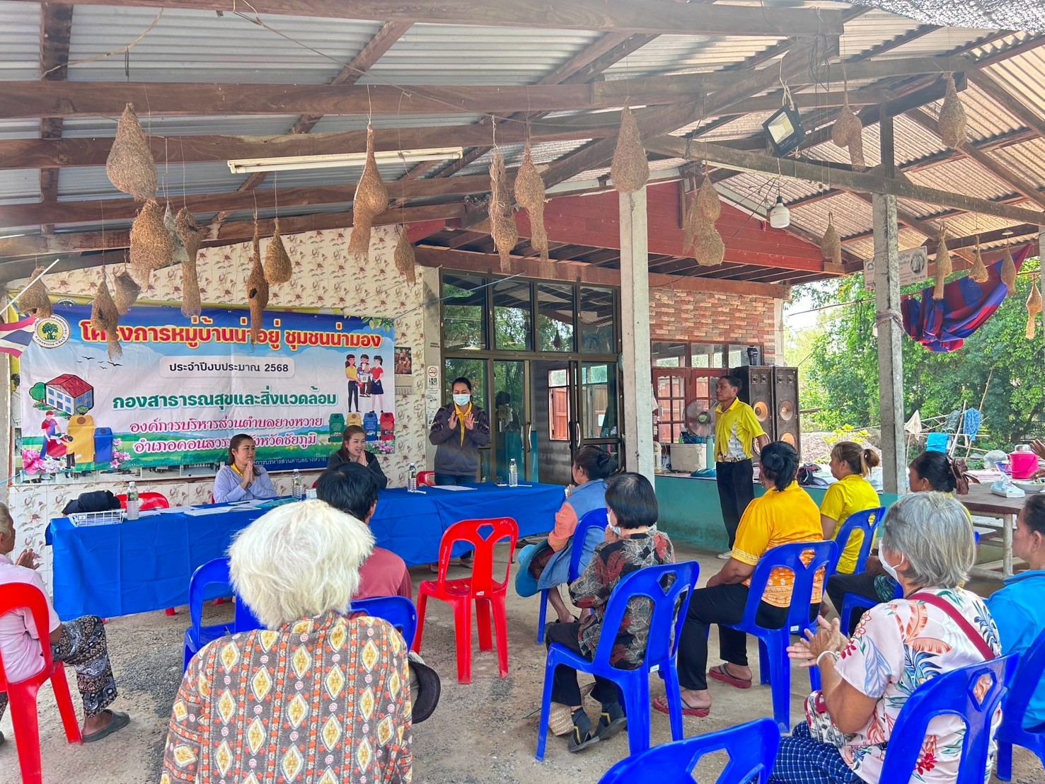 -จัดประชุม ชี้แจงร่วมกับภาคีเครือข่าย ระดมความเห็นจาก โรงพยาบาลส่งเสริมสุขภาพตำบลยางหวาย กำนัน/ผู้ใหญ่บ้านทุกหมู่บ้าน ผู้ช่วยผู้ใหญ่บ้าน ส.อบต. โรงเรียนบ้านยางหวาย วัด ในตำบลยางหวาย ศูนย์พัฒนาเด็กเล็กตำบลยางหวาย ตัวแทนประชาชนหมู่บ้านละ 5 คนทั้ง 9หมู่บ้าน เพื่อชี้แจงวัตถุประสงค์ หลักเกณฑ์การประกวดฯและรายละเอียด โครงการฯ