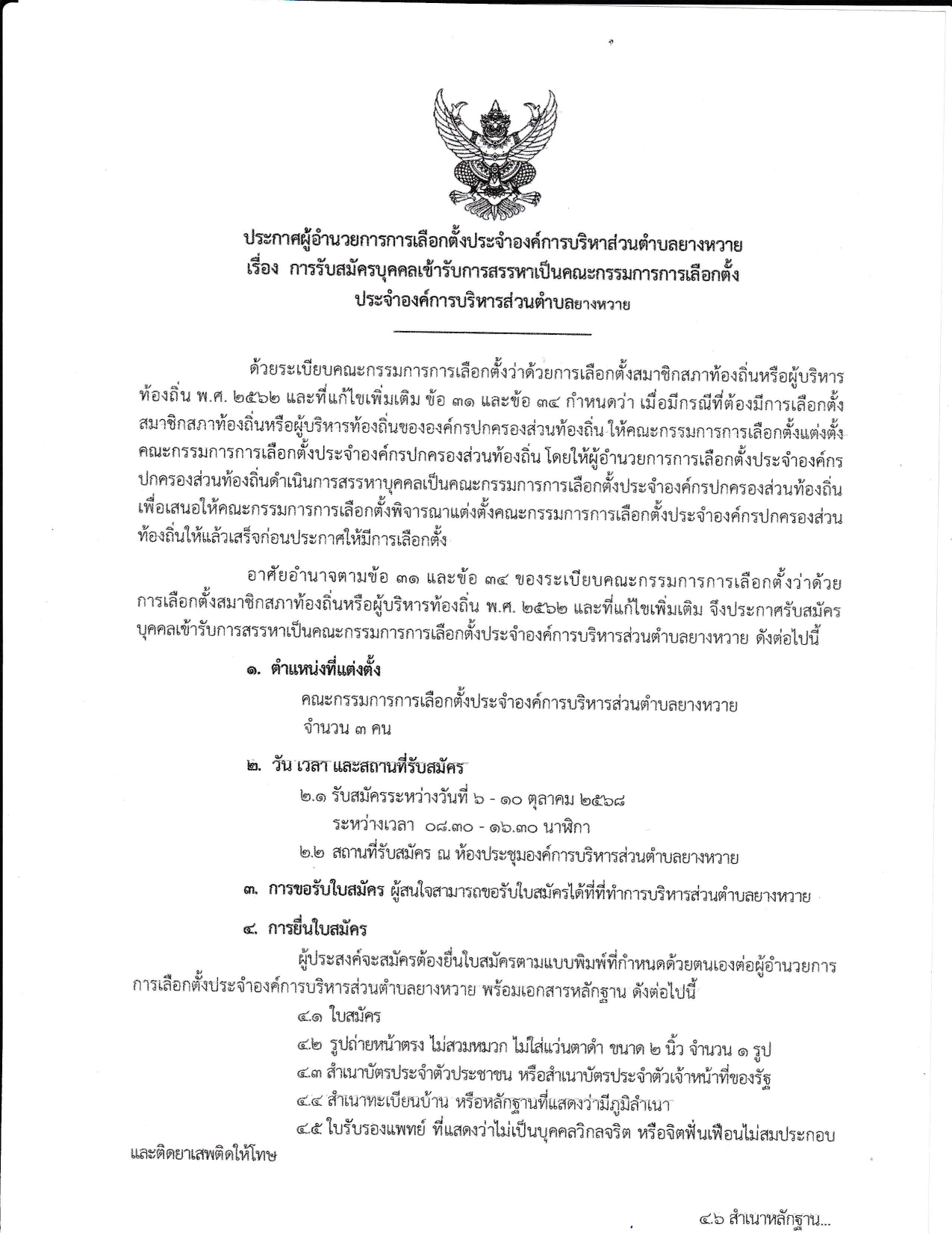 การรับสมัครบุคคลเข้ารับการสรรหาเป็นคณะกรรมการการเลือกตั้งประจำองค์การบริหารส่วนตำบลยางหวาย |